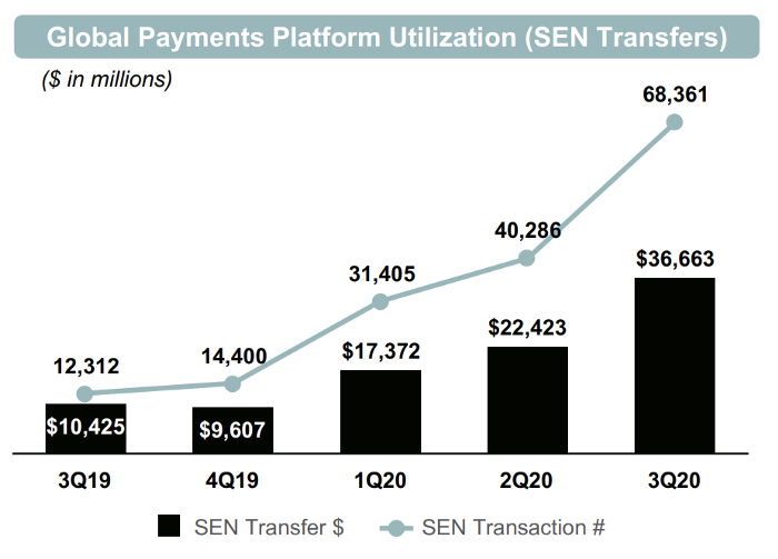 В третьем квартале 2020 года SEN обработала транзакций на сумму $36 млрд. Хотя такие продукты финансовой инфраструктуры, как правило, не рассматриваются в качестве критически-важных для биткойна, однако с их помощью обеспечивается эффективный клиринг и расчёты в фиатных средствах между криптовалютными фирмами в США. Это ещё один продукт, которого просто не существовало в 2017 году.