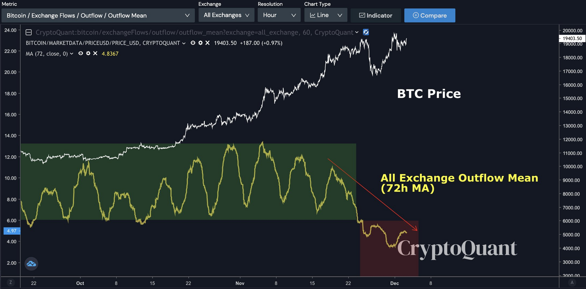 Причина, по которой биткойн продолжает консолидироваться под отметкой в $20.000, проста. Это происходит, потому что кто-то продает достаточно большое количество монет, чтобы удержать цену ниже $20.000. Это логически подтверждается и данными о среднем притоке средств на биржи, рисующими непростую для биткойна ситуацию. Вероятно, этому индикатору может быть полезно уделить внимание в ближайшем будущем.