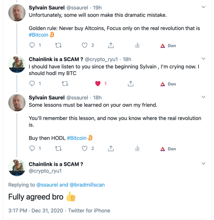 Chainlink is a SCAM ? @crypto_ryu1: в ответ @ssaurel и @bradmillscan: Полностью согласен, братан!