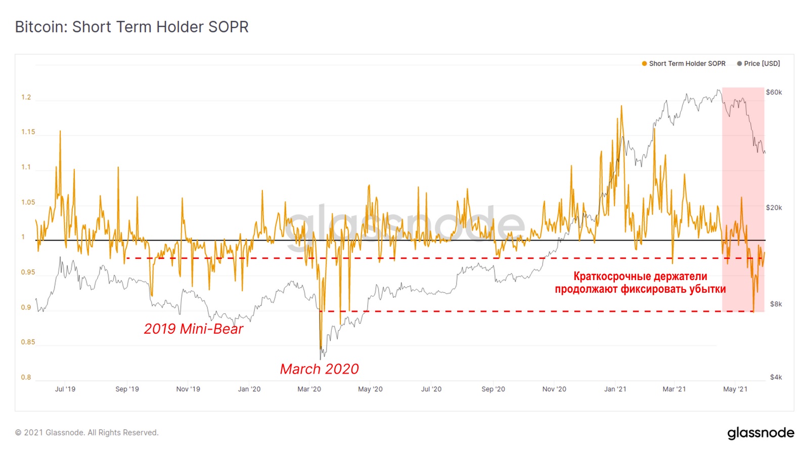- С другой стороны, краткосрочные владельцы во время этой распродажи увеличили объем расходования более чем в 5 раз, причем максимальный объем был распределен вблизи текущего локального минимума.