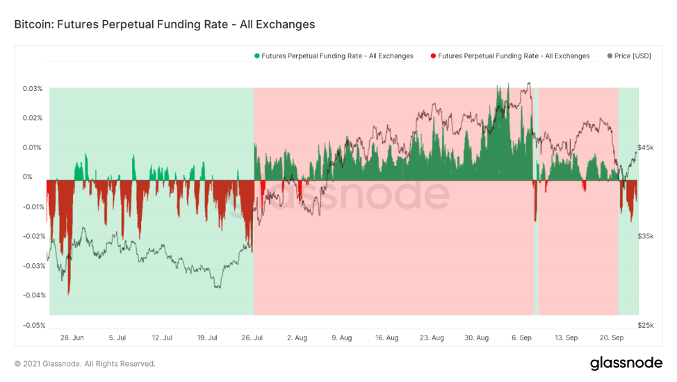В настоящее время финансирование было отрицательным в течение нескольких дней подряд. Это либо означает, что спот лидирует по сравнению с фьючерсами, либо существует высокий спрос на короткие позиции по бессрочным фьючерсам.