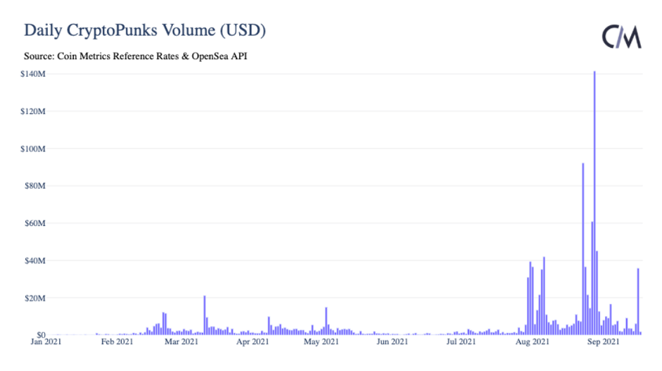 Также появились признаки повышения сложности инвестирования в NFT. 30 июля анонимный покупатель потратил $7 млн на приобретение 104 криптопанков в одном блоке. Они выборочно купили 104 наименее дорогих криптопанков на рынке, значительно повысив планку (“минимальная” цена относится к цене самого дешёвого доступного NFT в коллекции). Это вызвало всплеск других покупок и привела к новому рекордно высокому ежедневному объёму продаж криптопанков.