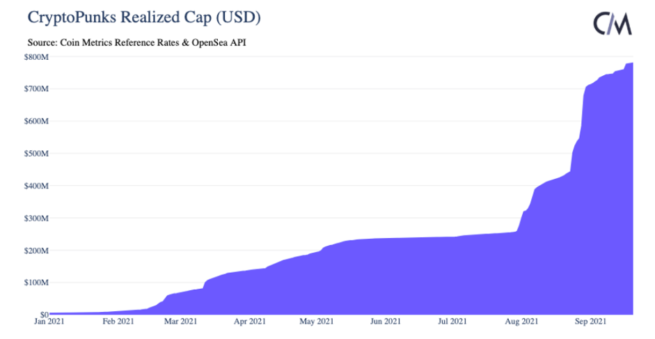 По состоянию на 20 сентября 2021 года реализованная капитализация криптопанков составляет ~$780 млн.