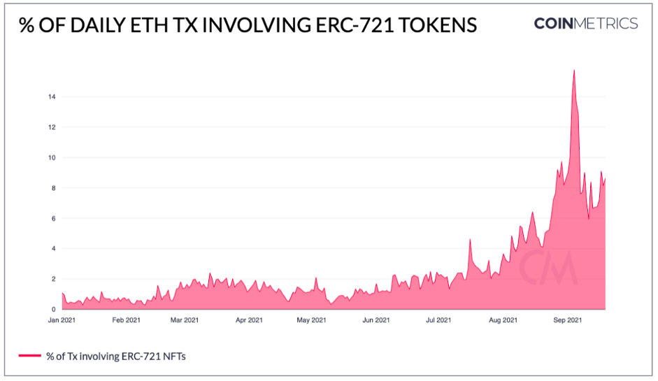 NFT стали одним из наиболее динамичных секторов развивающейся криптоэкономики. С тысячами различных существующих NFT проектов и большим количеством анонсируемых каждый день, NFT теперь составляют существенный процент от всей активности в сети Эфириума.