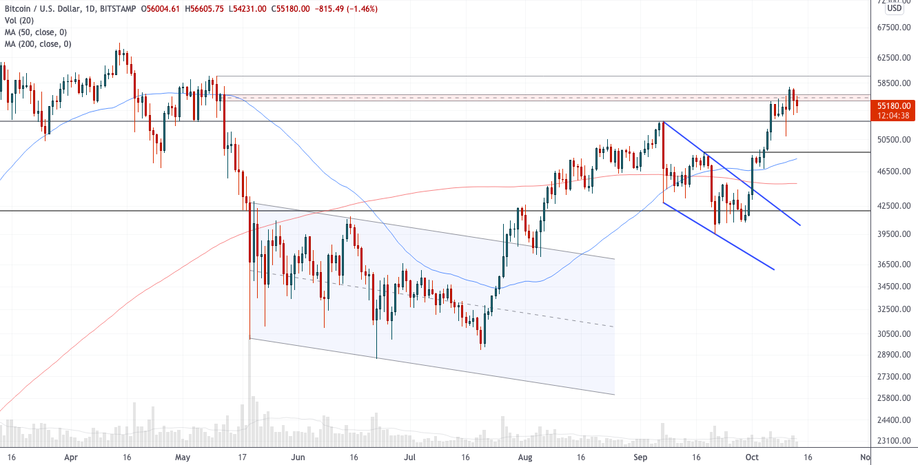 В общем, ничего нового. Цена прошла сопротивление, попыталась удержать его в качестве поддержки, но неудачно. Ничего страшного, просто сильное сопротивление на нескольких таймфреймах. Ключевые уровни поддержки обозначены на графике. Едва ли какие-либо движения цены в диапазоне от $48 тыс. должны нас удивлять.