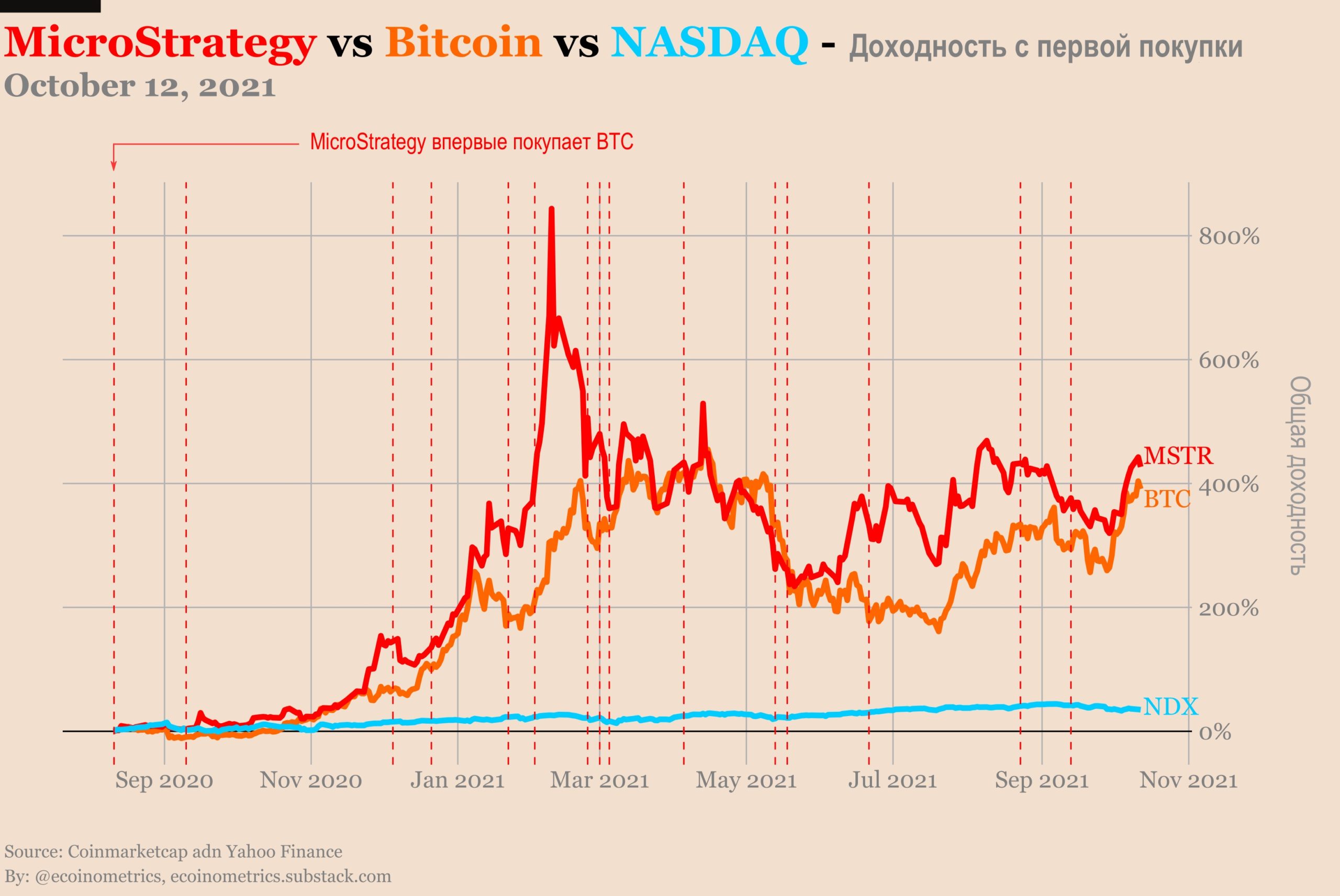 То есть американская комиссия по ценным бумагам уже одобрила ETF по акциям компаний, размещающих капитал в биткойне. Это не то же самое, что ETF с фьючерсами, индексирующимися по биткойну, но вообще-то довольно близко. Я имею в виду, что любой фонд, держащий, например, акции MicroStrategy, в сущности отслеживает движения курса BTC.