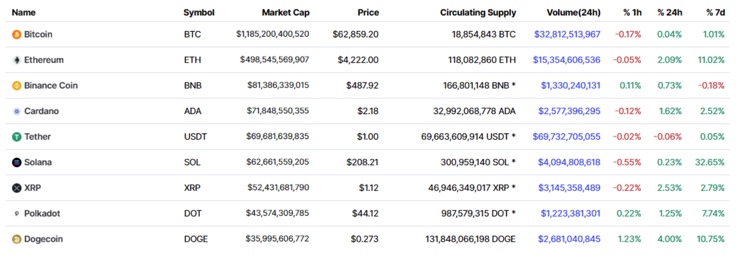 Биткойн достигает рекордного максимума и закрывается выше $60 тыс.