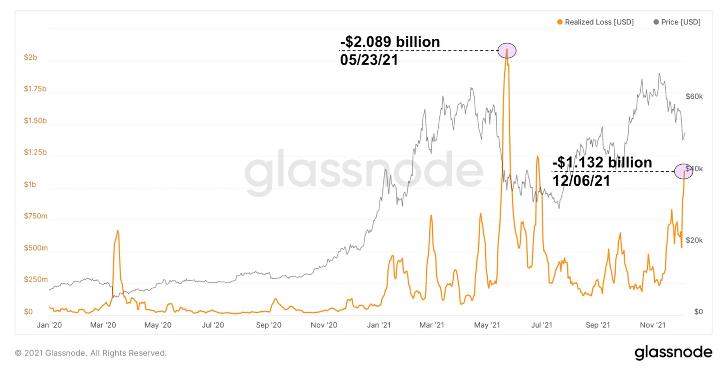 В ходе последнего делевериджа на прошедших выходных рынок реализовал более $1,13 млрд убытков (если применить 7-дневную скользящую среднюю). Более $3 млрд убытков было реализовано в один день, что является самым высоким реализованным убытком с мая этого года. Если добавить к этому прибыль, реализованную в субботу 4 декабря, то рынок получил чистый убыток в размере $2,18 млрд.