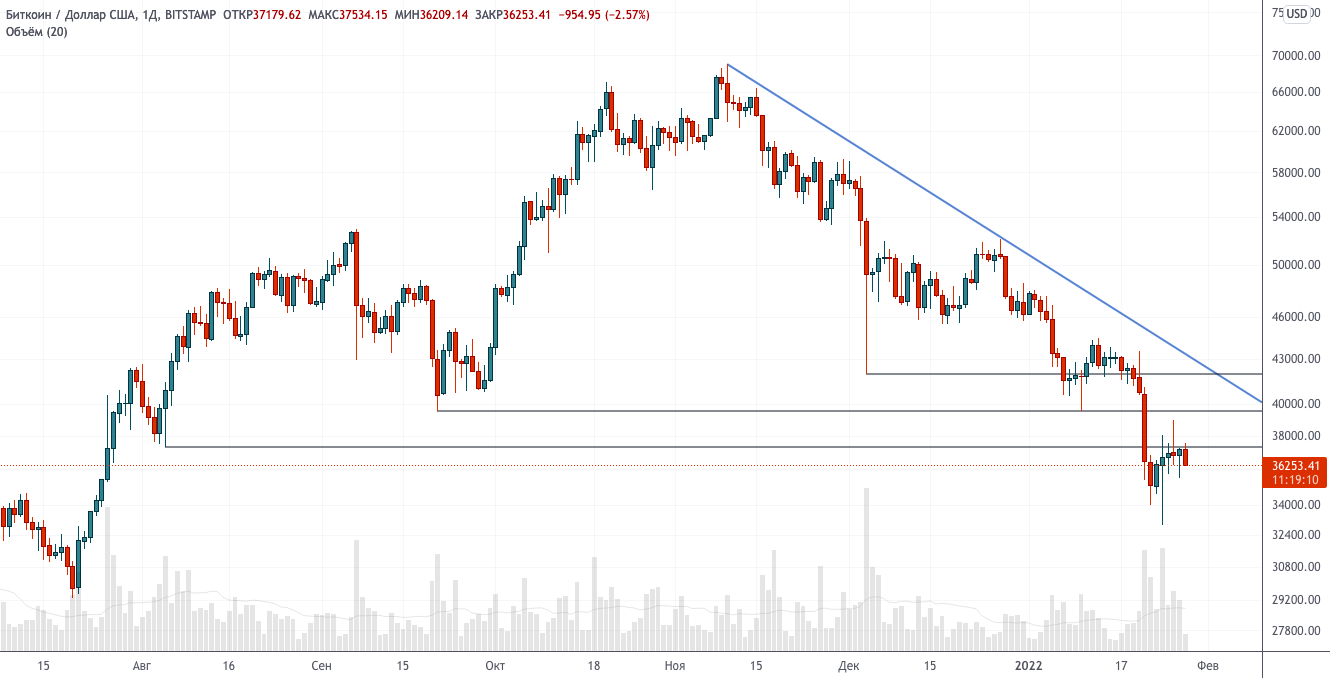Рынок пытается штурмовать ближайшее сопротивление $37,3 тыс. и пока без особого успеха. Вот и весь анализ. Уровни определены и ни о каком восстановлении и говорить не приходится, пока мы не преодолеем хотя бы первый из них.