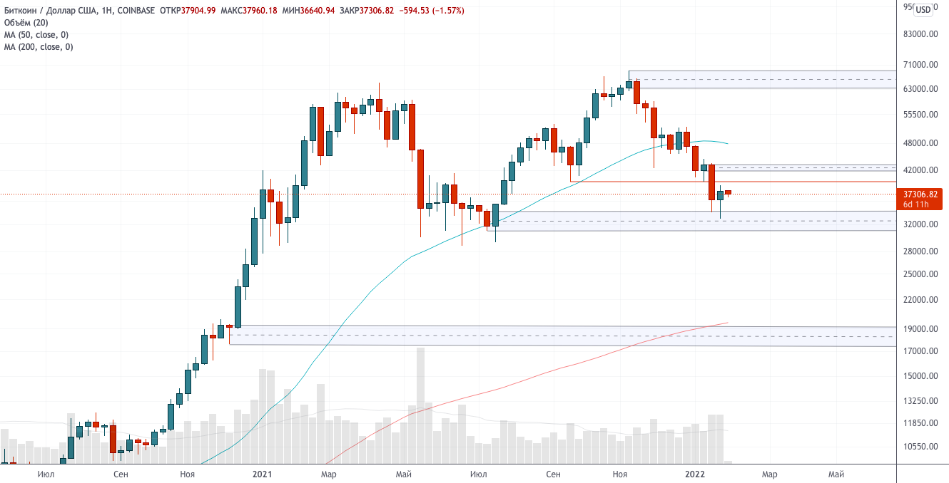 Как вы знаете, я не склонен говорить о восстановлении бычьего тренда, пока рынок торгуется ниже $39,6 тыс. Скорее даже $42 тыс.
