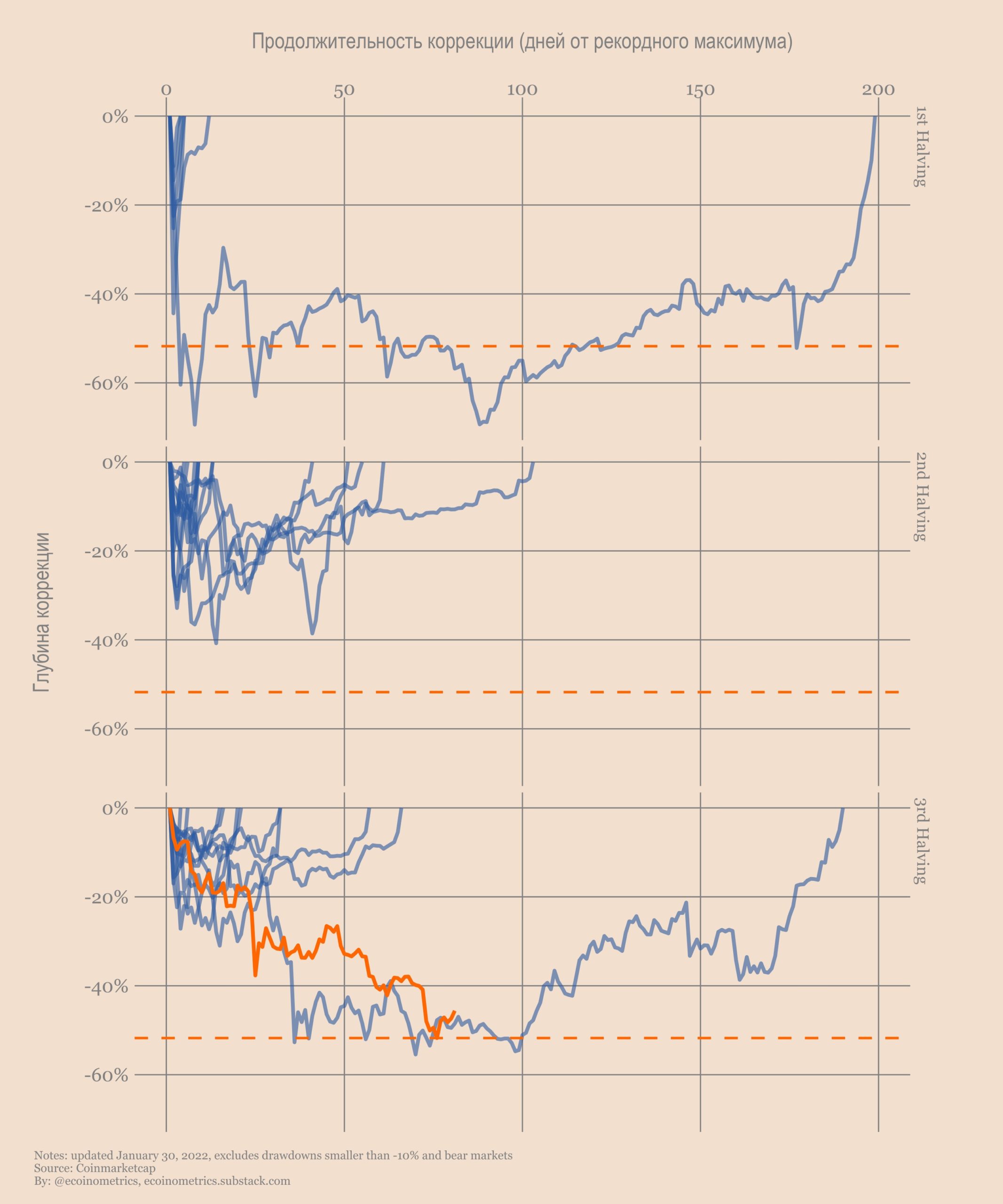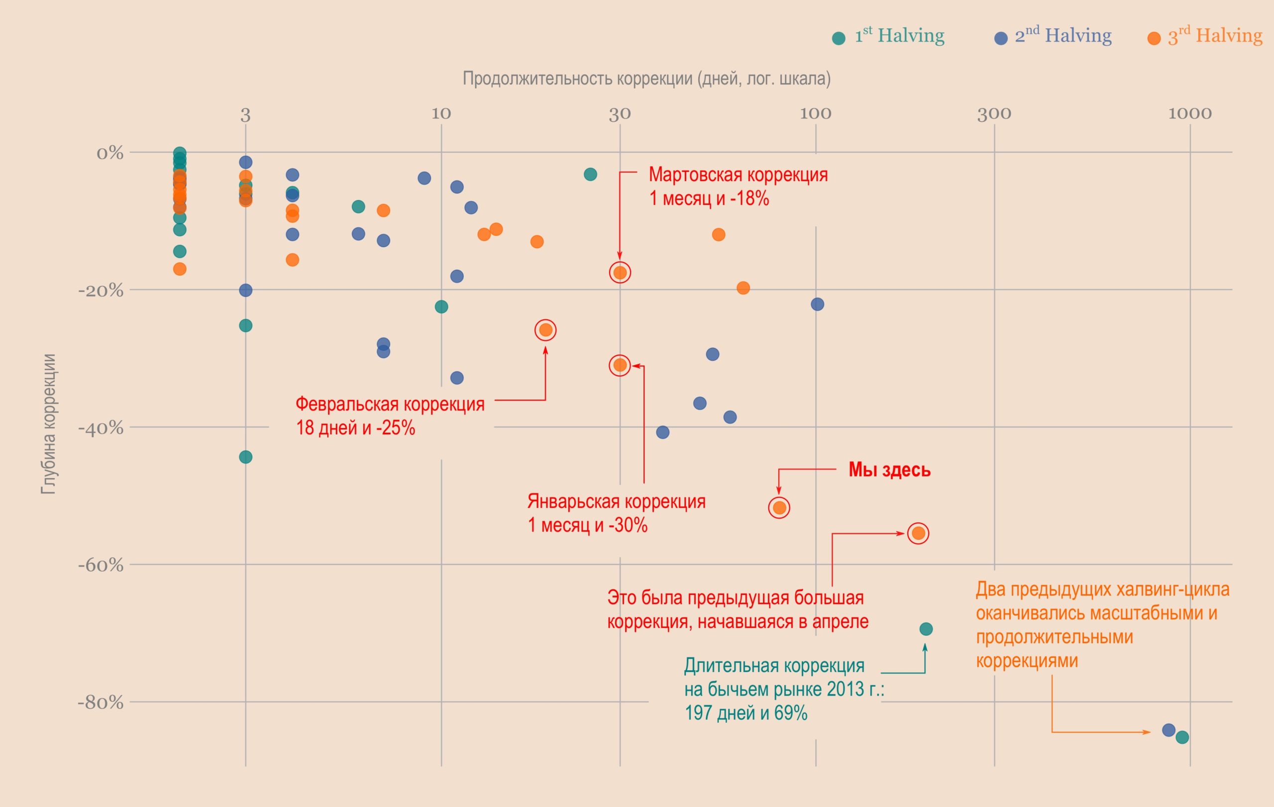 Потому что в нынешнем виде эта коррекция является исключением, статистическим выбросом. Подобных просадок в пост-халвинговых циклах практически не происходило.