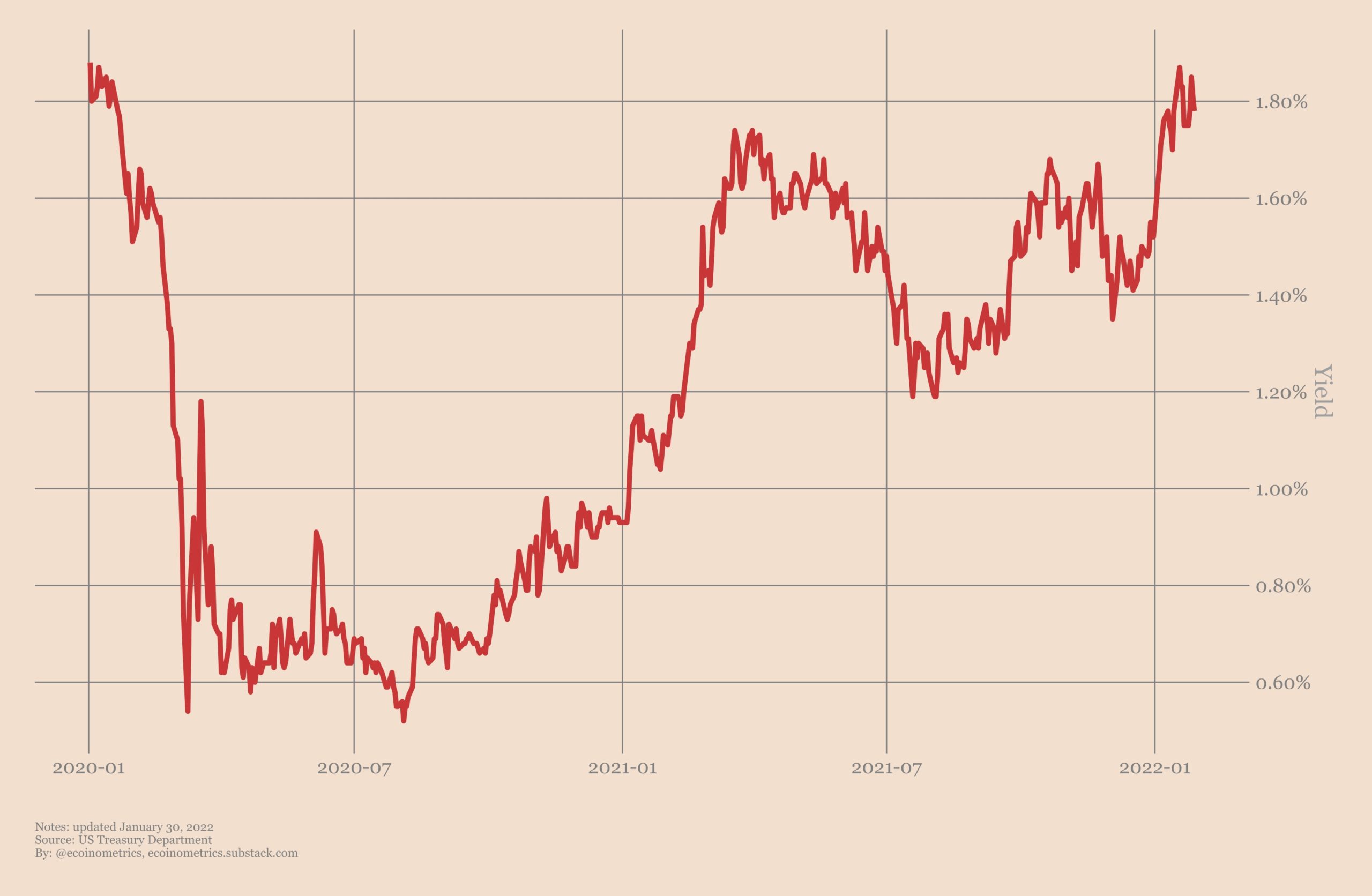 Доходность 10-летних казначейских облигаций США только что вернулась к доковидному уровню.