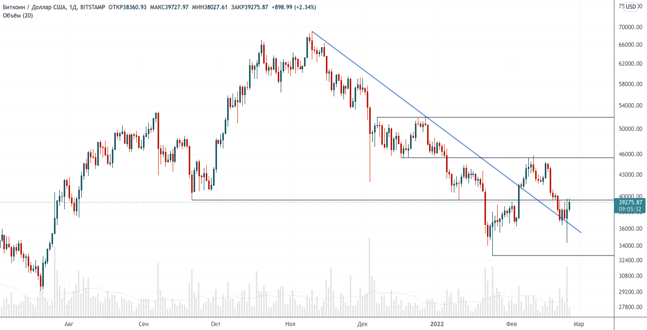 $39,6 тыс. — это ключевое сопротивление на дневном таймфрейме.