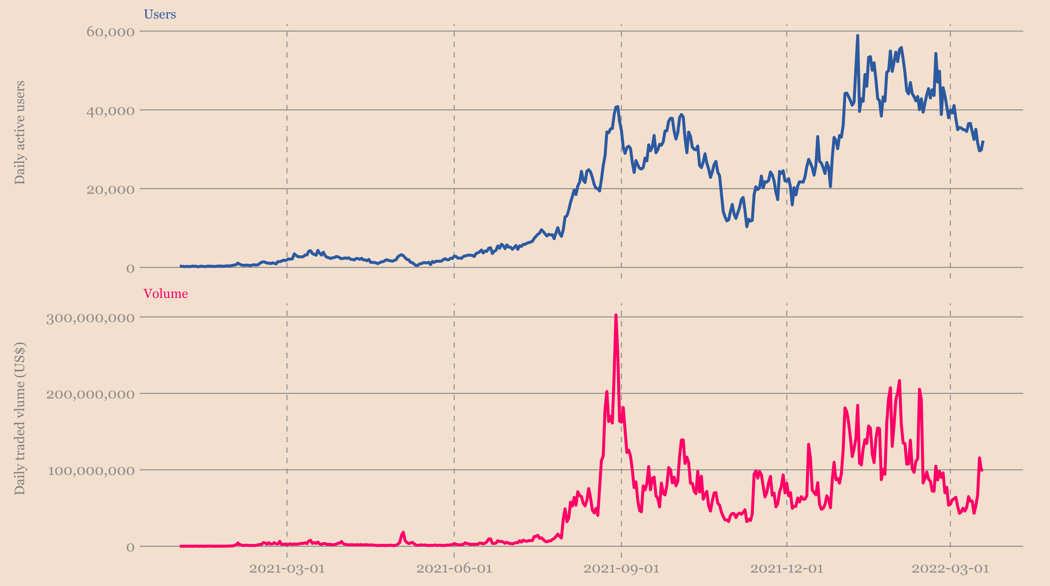 Проекты DeFi и NFT составляют подавляющее большинство приложений, работающих на Эфириуме. И хотя количество пользователей большинства децентрализованных приложений смехотворно мало по сравнению с потенциальным рынком, оно оставалось стабильным во время этого медвежьего рынка.