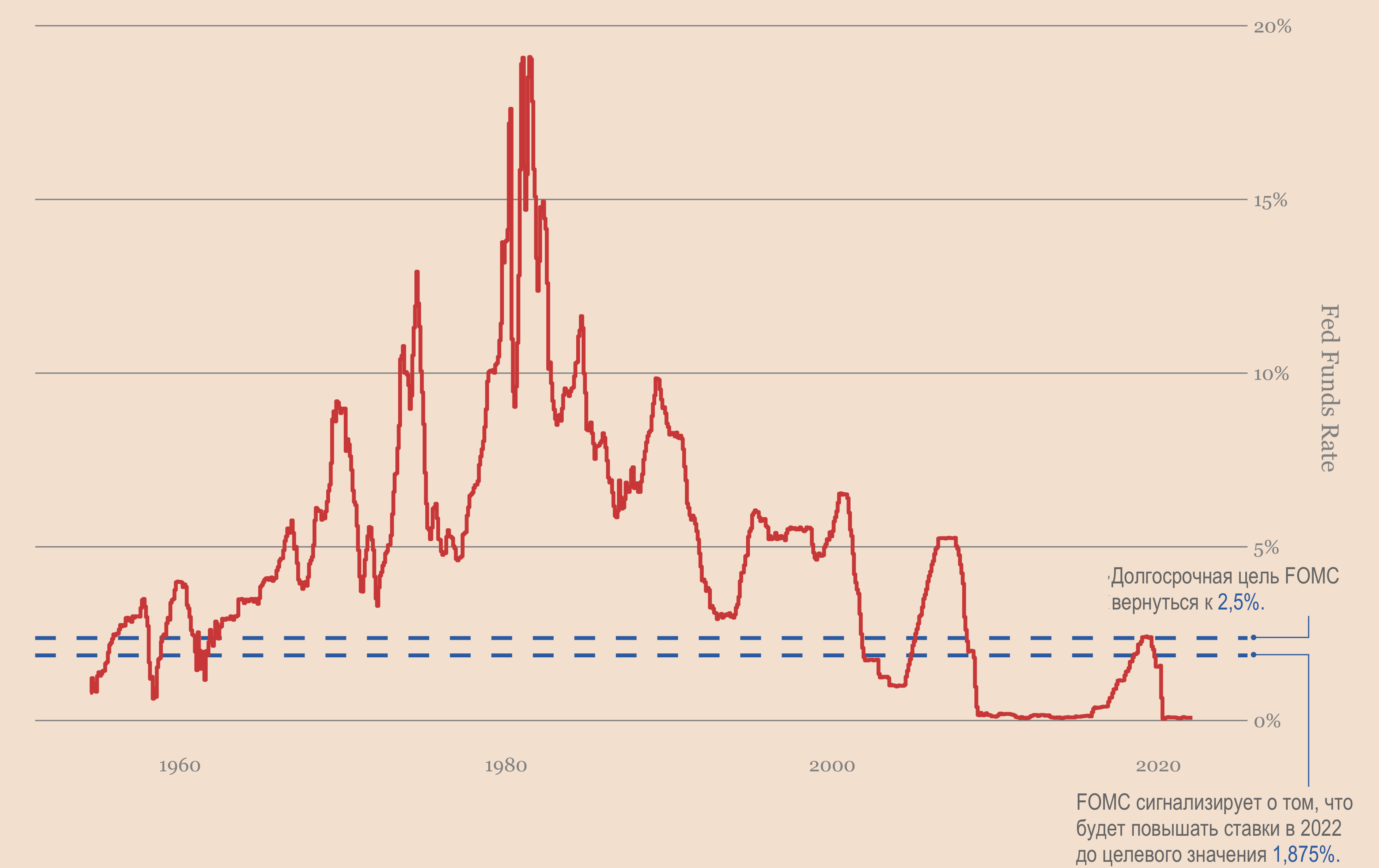 Означает, что можно ожидать, что ставки в конечном итоге составят 1,875% к концу 2022 года. По крайней мере, если финансовые рынки не рухнут до этой даты.