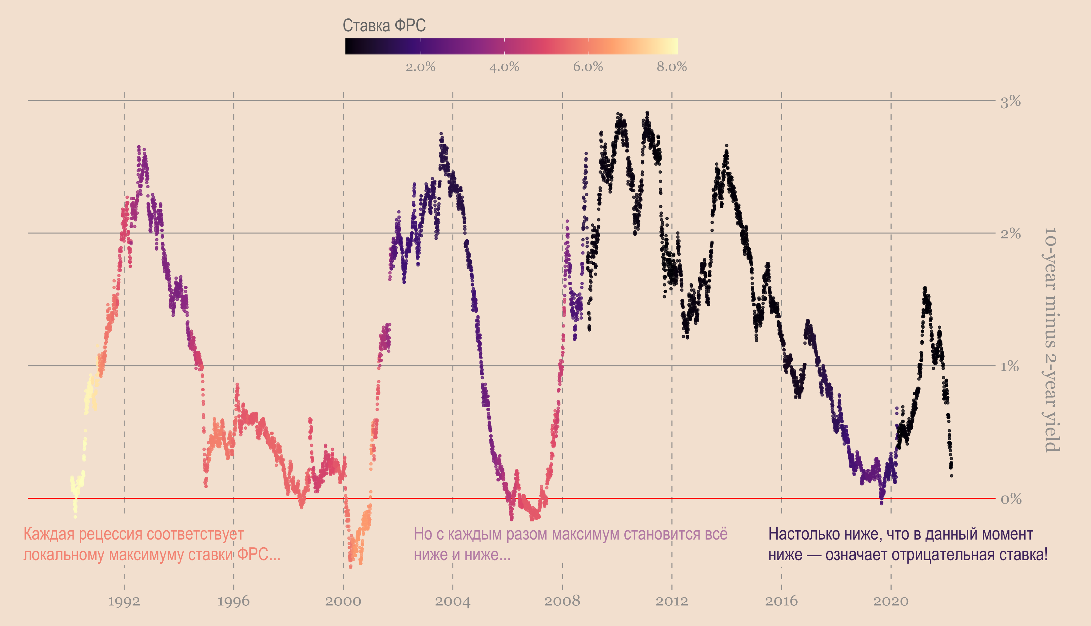 Предположим, что ФРС достаточно уверена в том, что следующая рецессия не за горами, независимо от того, что они делают. Тогда имеет смысл повысить ставки как можно быстрее, прежде чем начнётся рецессия, чтобы позже иметь возможность что-то сделать.