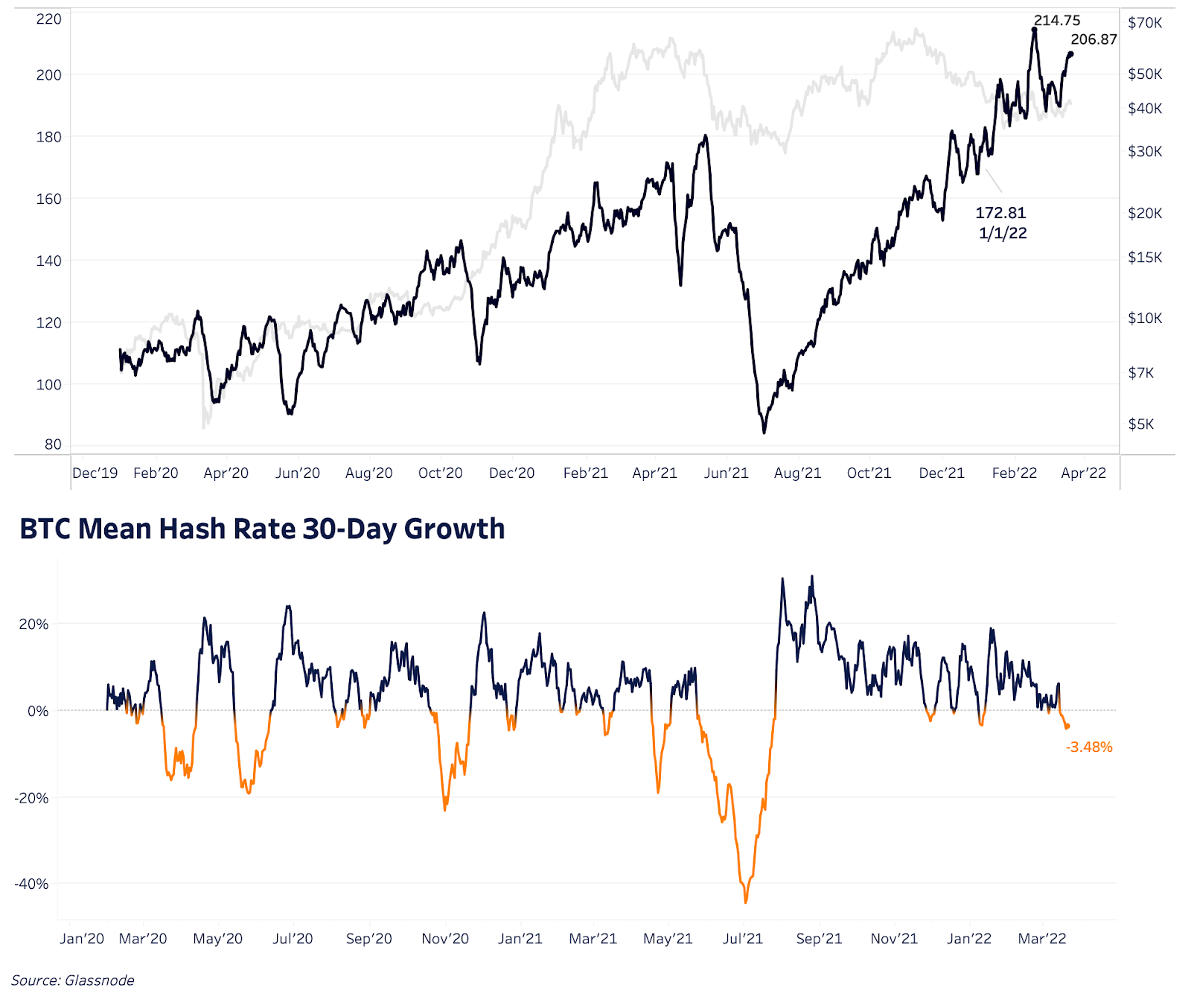 Нам придётся подождать и посмотреть, продолжит ли падать хешрейт. Следует отметить, что многие аналитики отрасли говорят об уровне 300 EH/s к концу 2022 года при текущем показателе 205,87 EH/s.