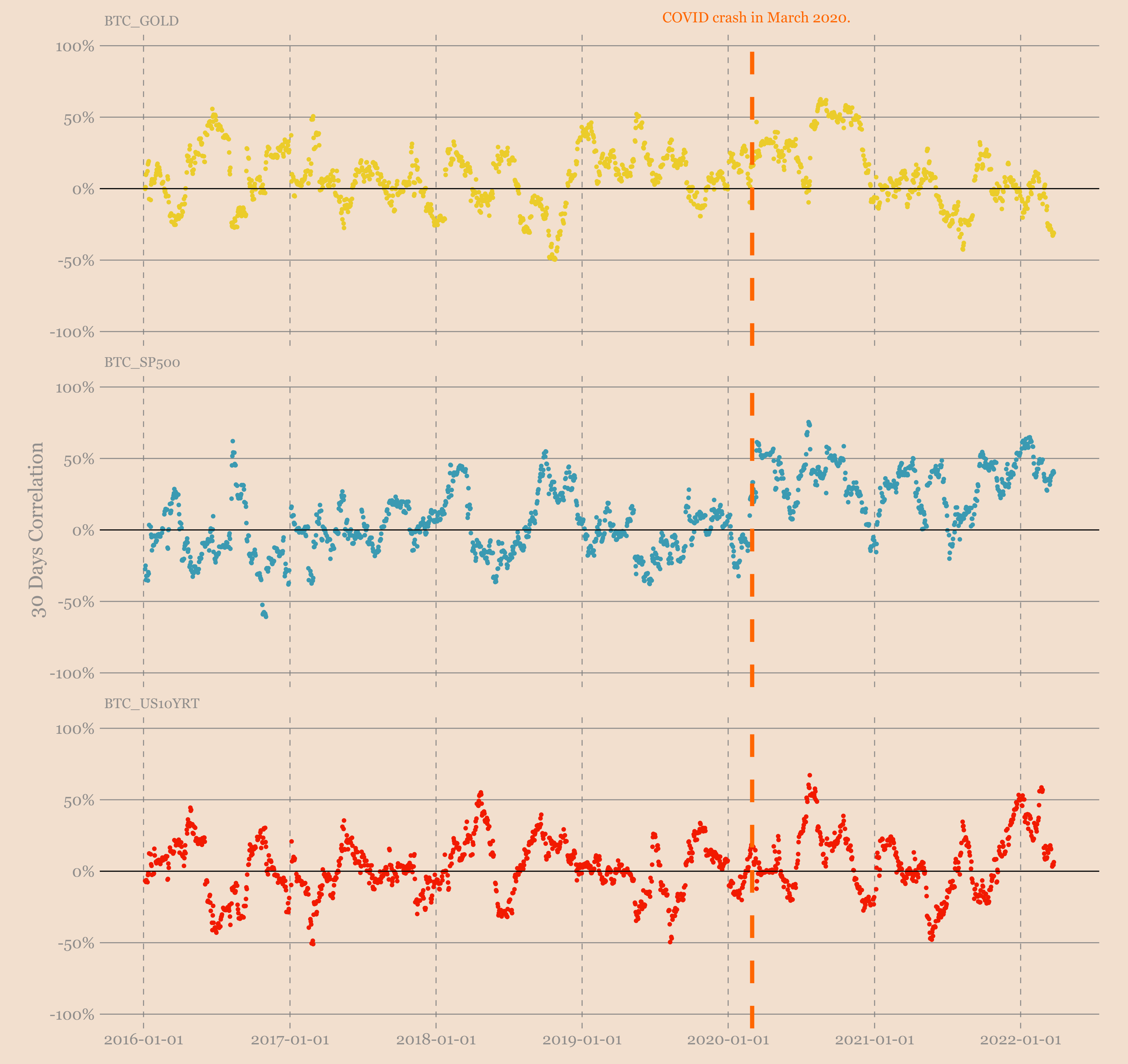 Это означает, что остаются рисковые и цифровые активы. А поскольку многие инвесторы делают и то, и другое одновременно, в конечном итоге биткойн продолжает положительно коррелировать с фондовым рынком.
