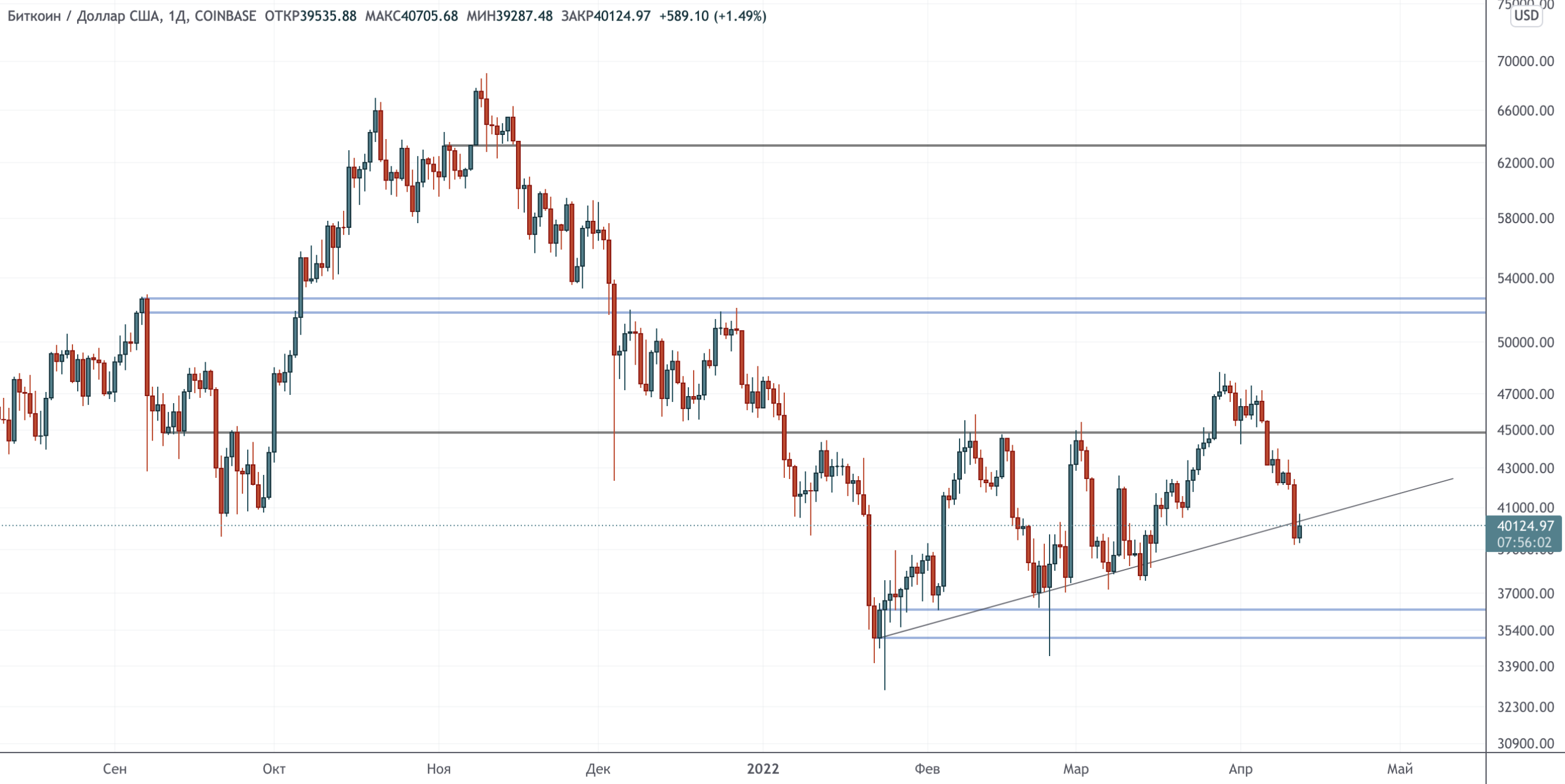 Биткойн: прорыв провален, ретест линии тренда в процессе