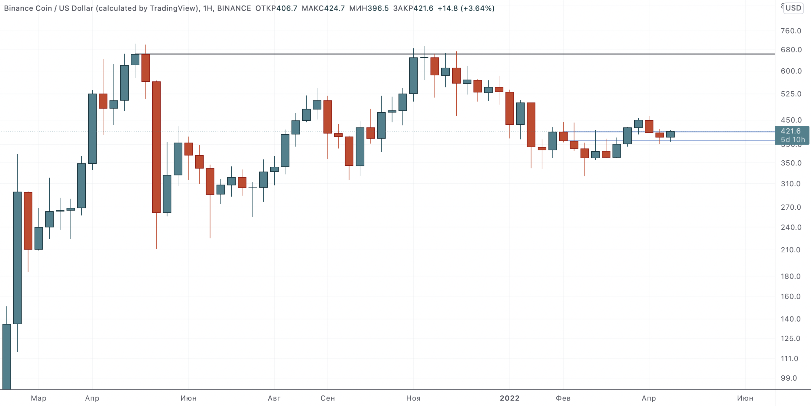 Для BNB/USD есть две опции: больший минимум у $400 или свободное падение.