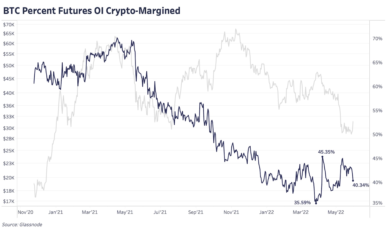 Если майский минимум был локальным или даже абсолютным дном, то он отличался от прошлых аналогичных уровней, поскольку большая часть давления продаж исходила от спотовых рынков, а не от вынужденных продаж в форме маржин-коллов и ликвидаций на рынках деривативов.