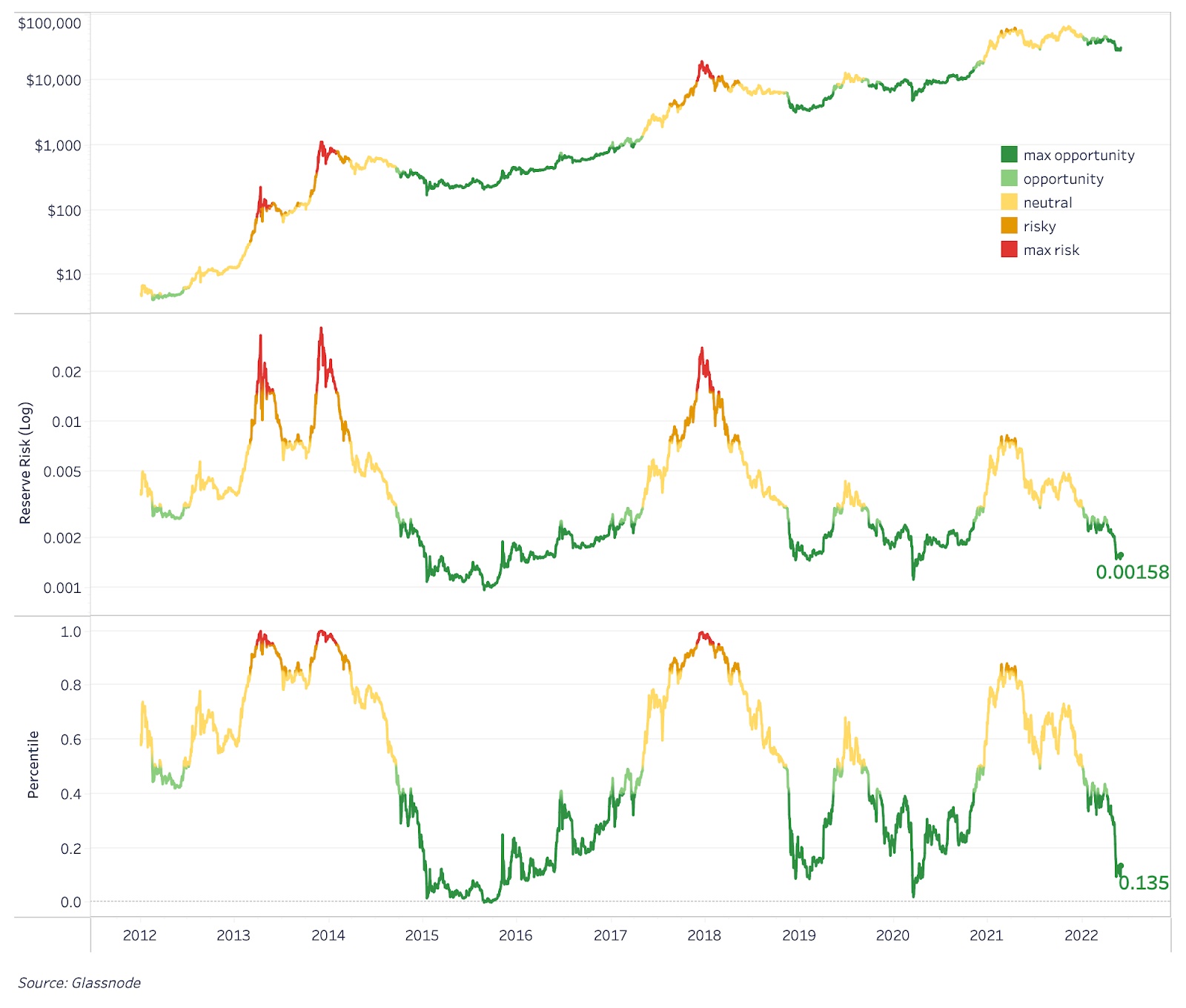 В настоящее время Reserve Risk находится в 13-м процентиле своих исторических значений.