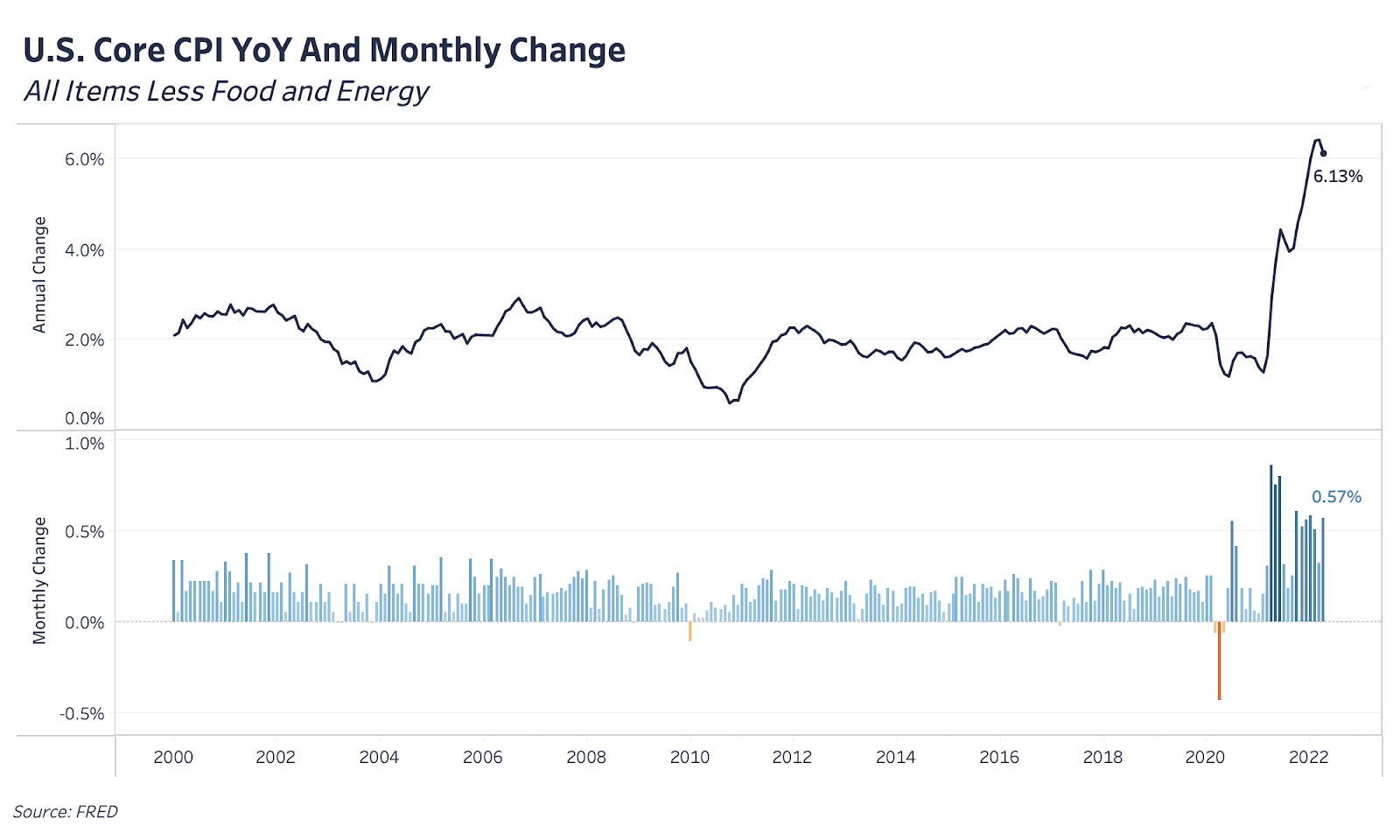 ФРС пытается оказать давление на благосостояние, чтобы снизить потребительские расходы и активность, что, в свою очередь, приведет к сдерживанию инфляции. Месячные значения ИПЦ будут важным показателем на этом фронте, и рост последних опубликованных значений месяц к месяцу — это сигнал к тому, что ФРС нужно предпринять гораздо более решительные действия по снижению спроса.