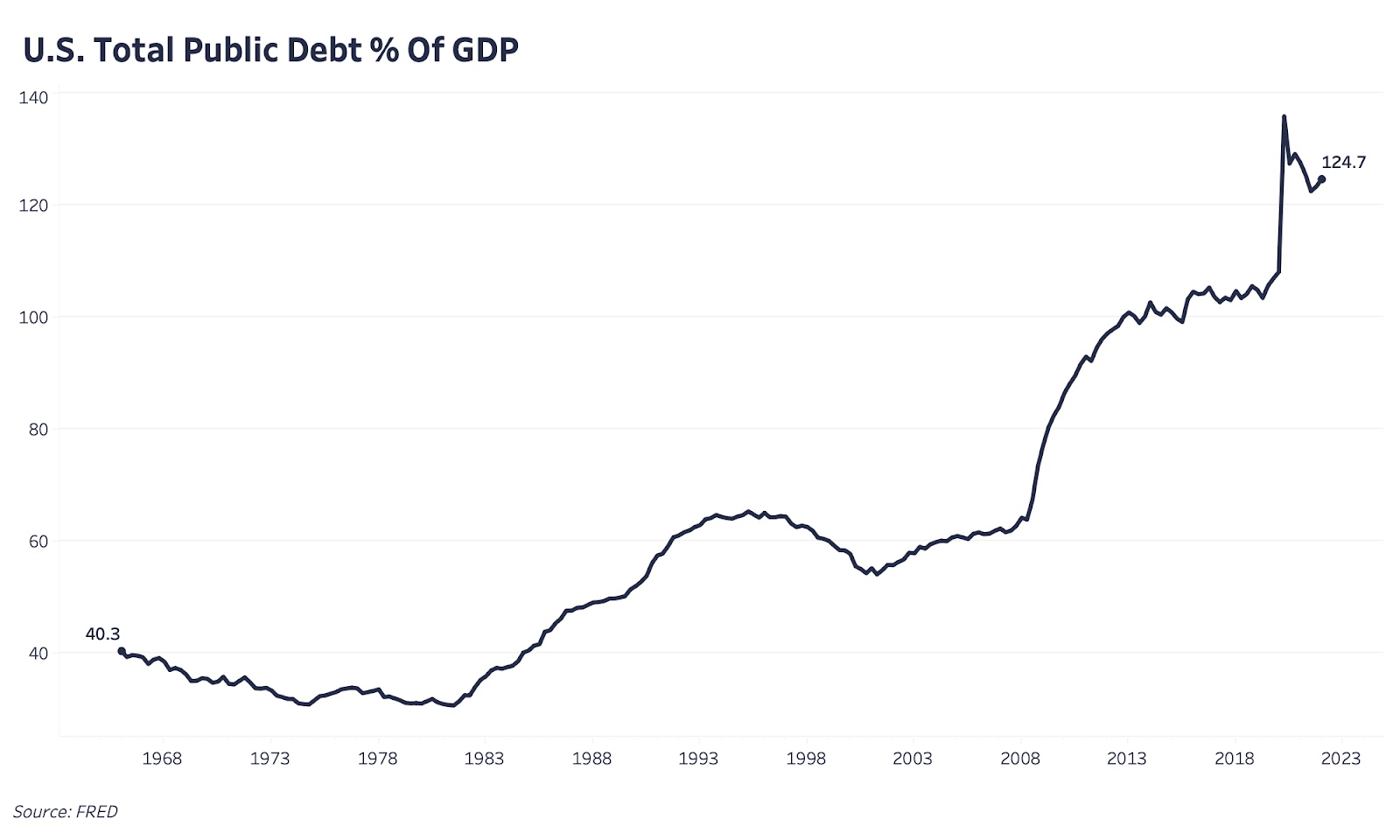Но сегодняшняя ситуация сильно отличается от 1970-х гг., и самое большое различие состоит в том, что объемы долга — прежде всего федерального долга по отношению к ВВП США — находятся на рекордно высоких уровнях.