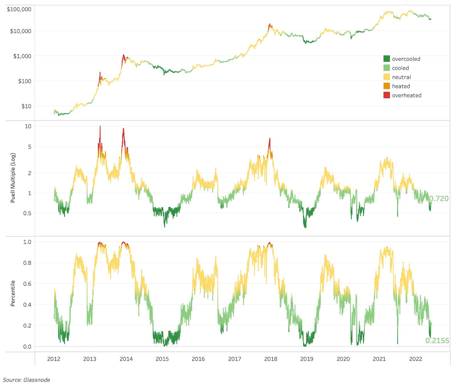 В циклических индикаторах мы используем как ценовую, так и ончейн-динамику для оценки относительной стоимости биткойна по сравнению с историческими стандартными значениями. При том количестве переменных, которые нужно принимать во внимание, циклические индикаторы отлично помогают отфильтровать лишний шум и объективно показать, торгуется ли биткойн относительно дешево или дорого в тот или иной момент времени.