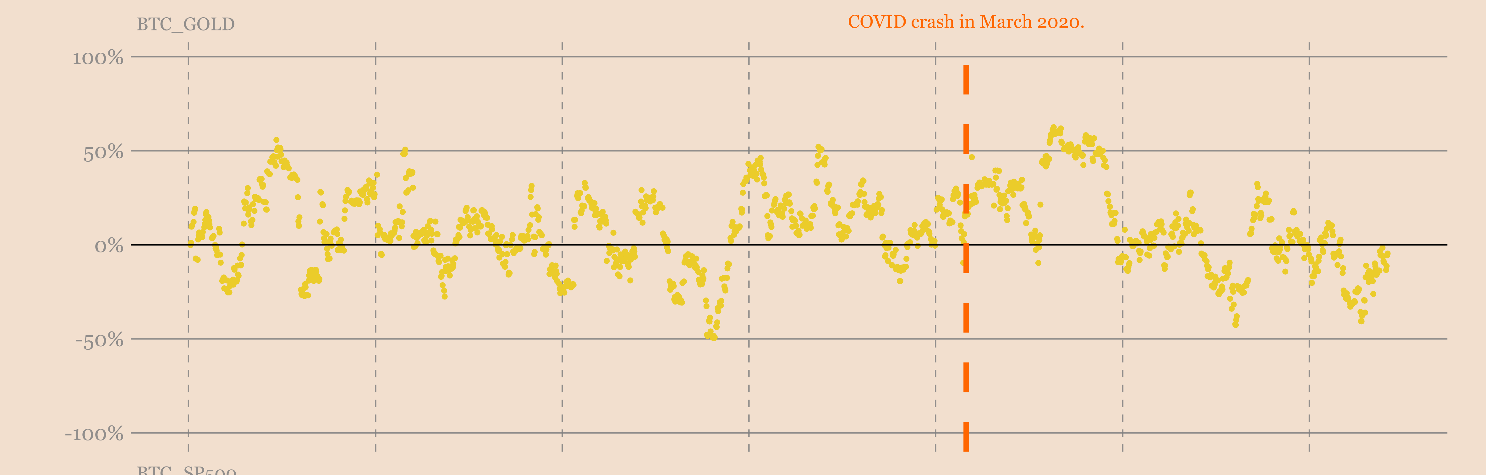 С золотом всё по-другому. Как правило, золото страдает меньше, чем рисковые активы, во время подобных событий, а также восстанавливается или даже начинает процветать гораздо раньше. В конечном счёте, это то, чего следовало бы ожидать от биткойна, если бы он вёл себя как способ сохранения капитала.