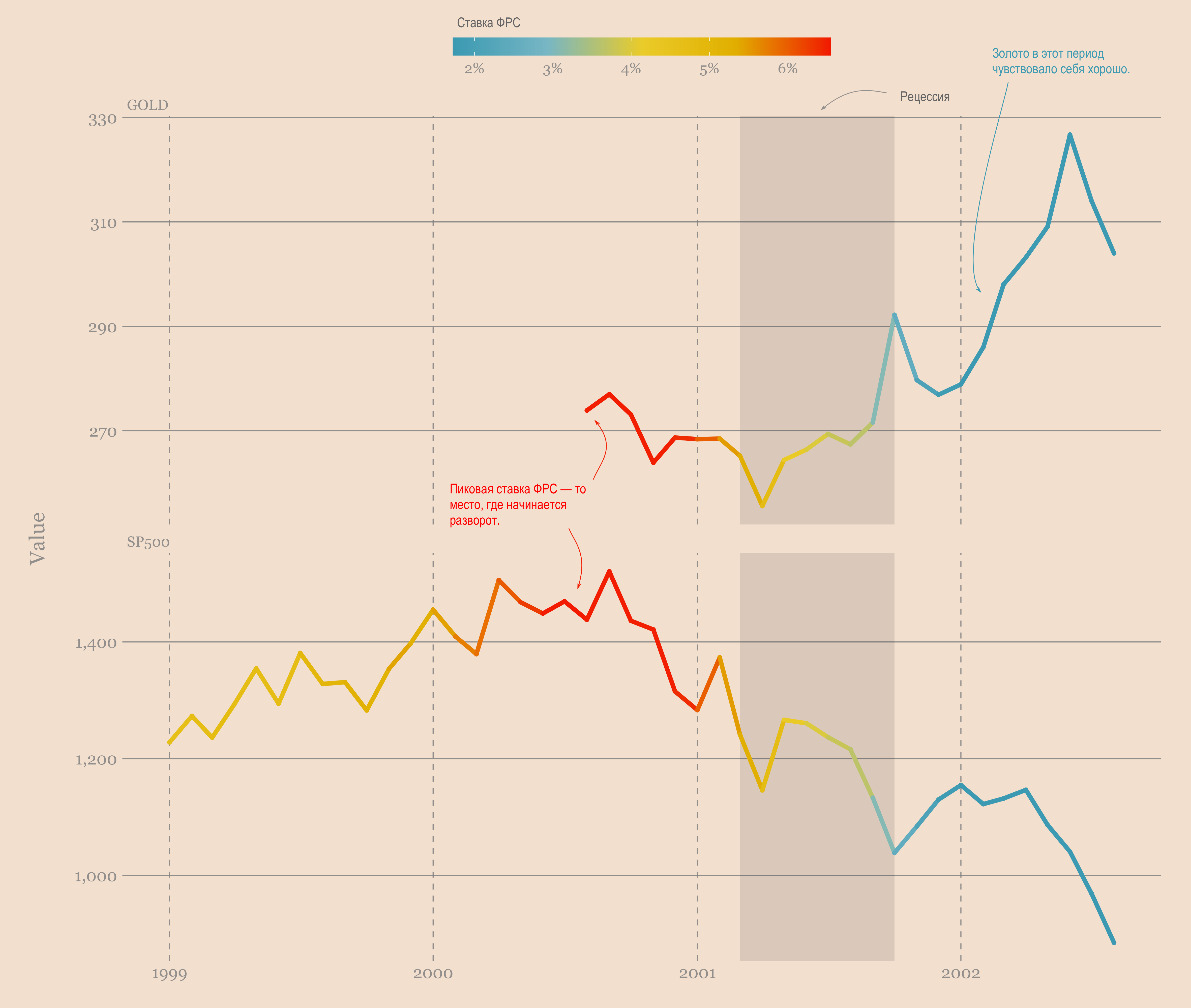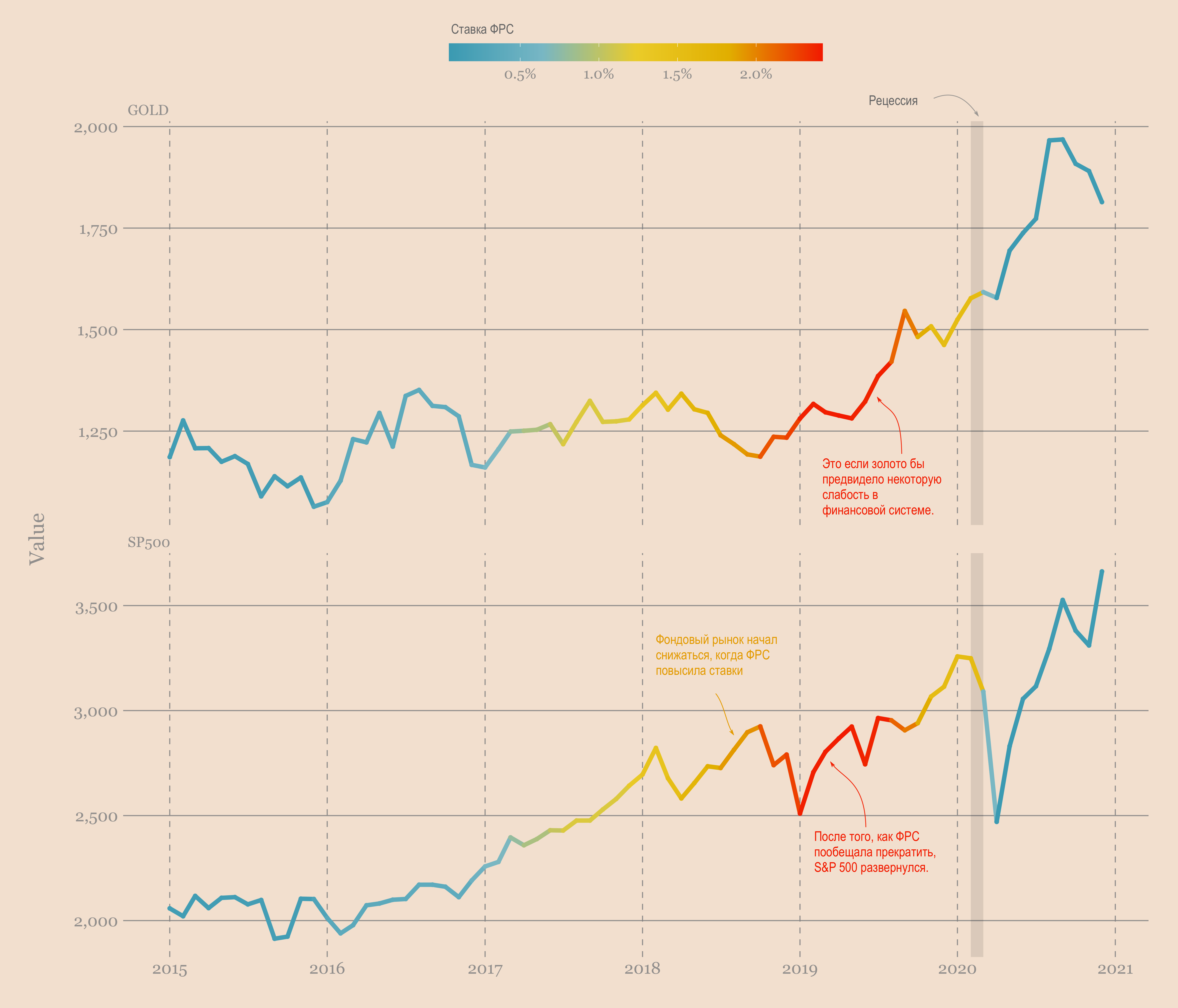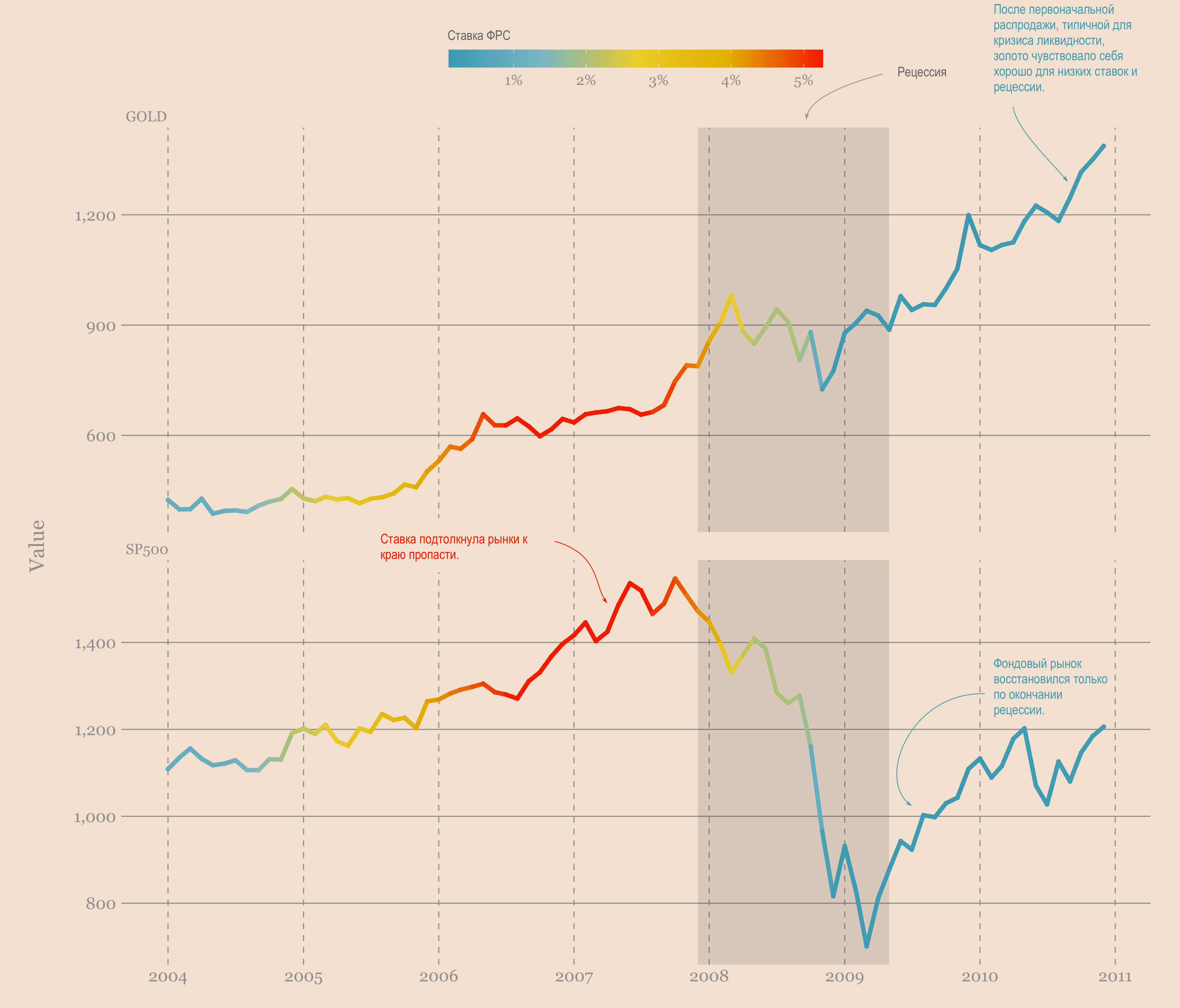 - Как ведут себя S&P 500 и золото во время рецессии?